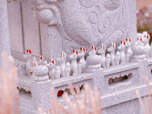 俊敏なイメージのあるきつねさんにあやかって、少年野球を頑張っているご家族、商売繁盛をお願いする方、大願寺前をお散歩コースにしている皆さまにお参りいただいています。